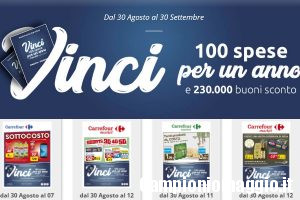 Carrefour: vinci 100 spese per un anno e 230.000 buoni sconto