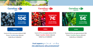 Buoni sconto Carrefour da 10€, 7€ e 5€