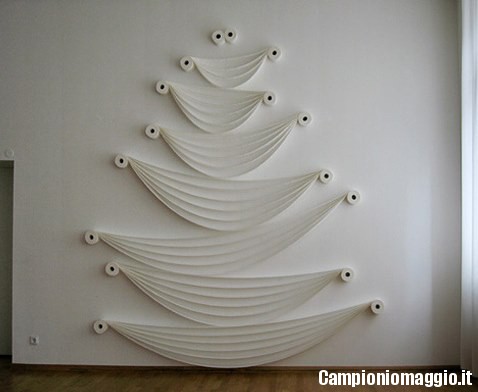 [dropcap]L[/dropcap]’albero ‘igienico’. Per gli amanti delle forme semplici e lineari vi è un’alternativa davvero fantasiosa al classico abete in legno: l’utilizzo di rotoli di carta igienica. Per realizzarlo, basta fissare i rotoli alla parete, due per ogni fila, aumentando la distanza tra loro mentre si procede verso il basso. Ogni rotolo va congiunto al parallelo srotolando qualche foglio e lasciandolo penzolare a proprio piacere.