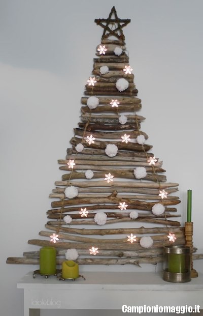 Albero di Natale con pezzi di legno di lunghezza crescente, decisamente shabby!
