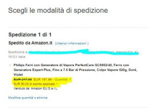 Per usufruire della promozione, collegati ad Amazon e scegli i prodotti che vuoi acquistare. Lo sconto lo vedrai nel carrello dopo aver scelto l’indirizzo di spedizione: sarà visibile nella pagina “scegli la modalità di spedizione”, come ti mostriamo qui sotto.