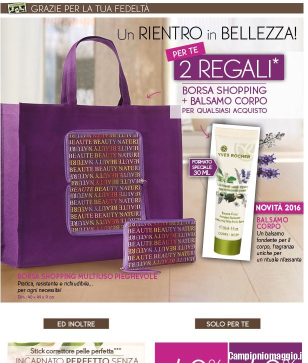 Borsa shopping e balsamo corpo in regalo da Yves Rocher