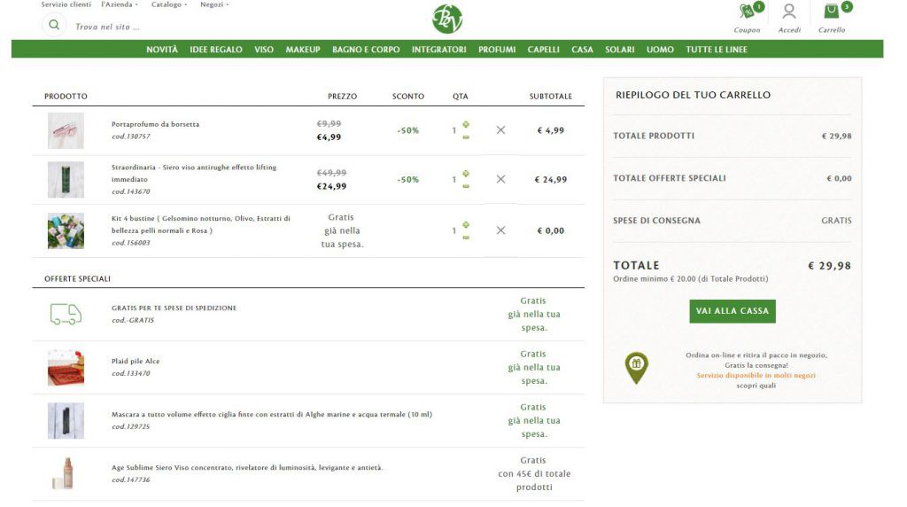 Solo a titolo esemplificativo vi mettiamo sotto un ordine, dove potete vedere tutti gli omaggi che riceverete con una spesa minima di 20€.