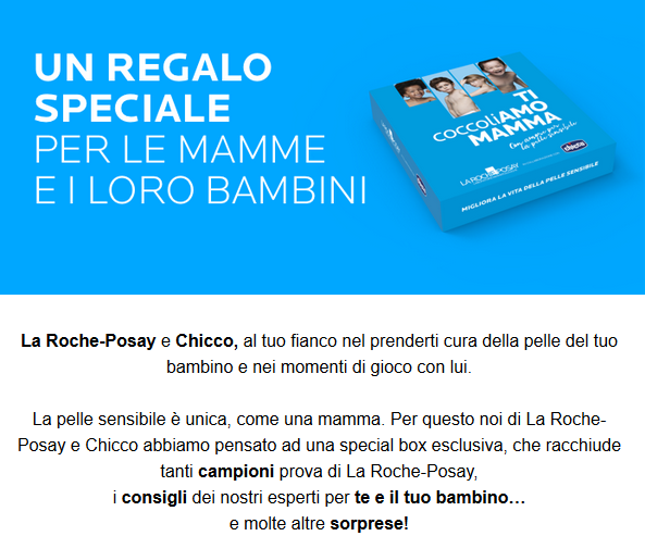 All’interno della scatola ci sono tanti campioni omaggio di La Roche-Posay e consigli per te e il tuo bambino, oltre a “molte altre sorprese” (così dice la mail).