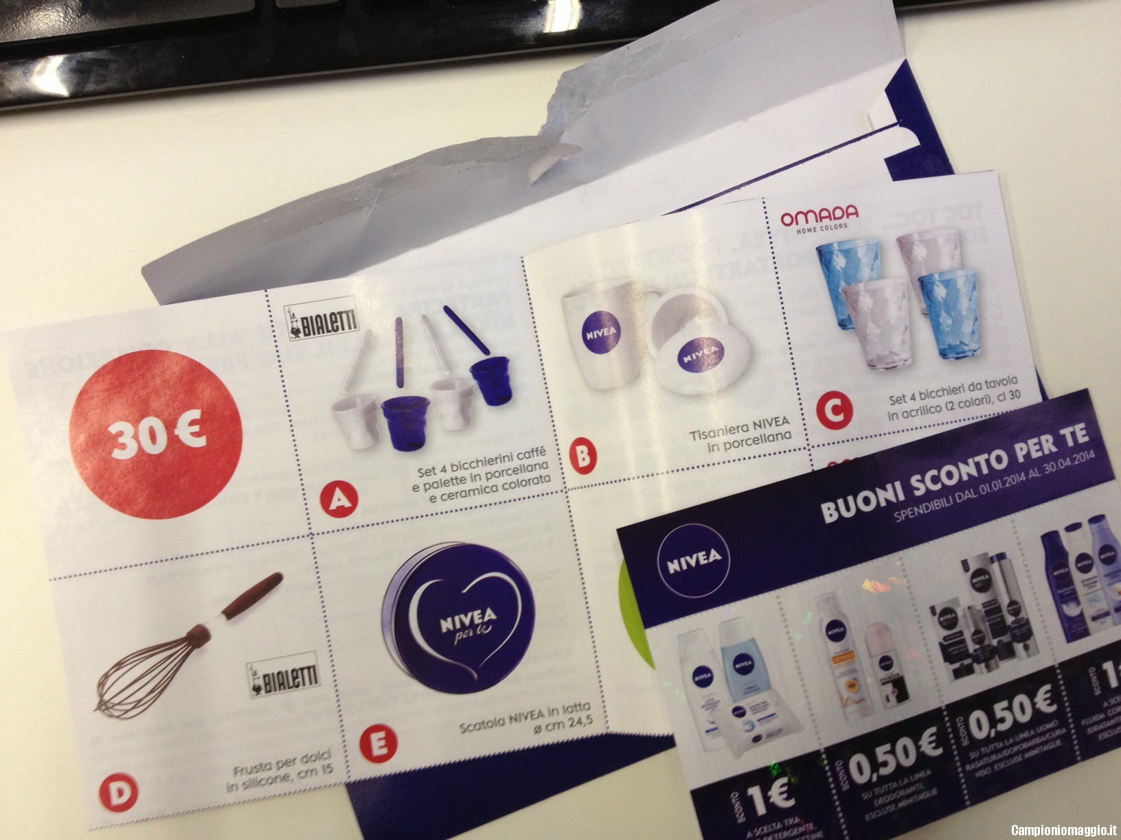 I coupon sconto sono spendibili dal 01.01 al 30.04 2014 sui prodotti Nivea a scelta tra le creme corpo, latte detergente e tonici, deodoranti e linea uomo per la rasatura.