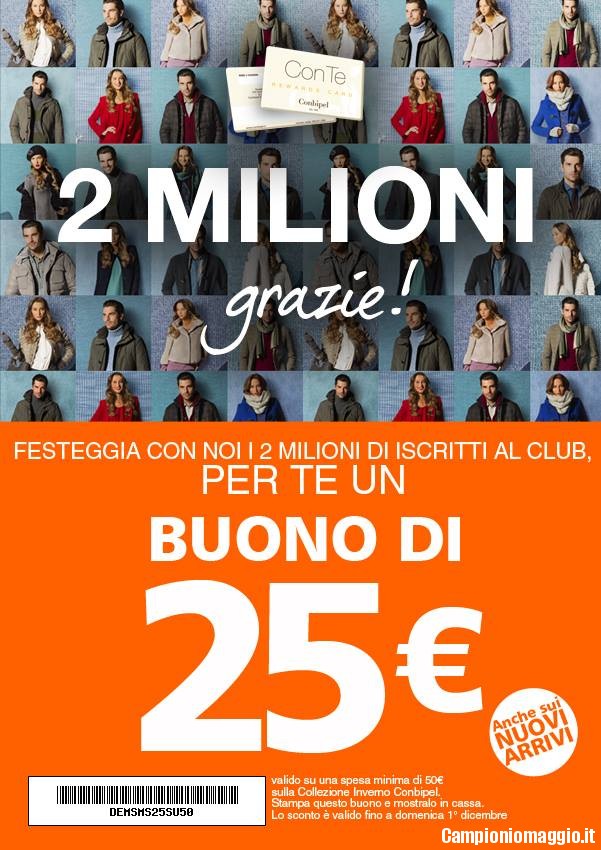 Dicembre è alle porte, perché non iniziare con un po’ di shopping preludio alle festività? Se volete anticipare gli acquisti natalizi, oppure prepararvi il look per le feste approfittate del coupon sconto Conbipel. Fino al 1 dicembre potete scaricare dalla pagina facebook un buono del valore di 25 euro da spendere su una spesa minima di 50 euro.