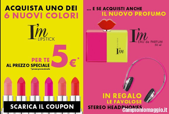 Per qualsiasi problema o informazioni puoi scrivere al customer care pupa4fan@pupa.it. Il coupon è spendibile fino al 10 maggio incluso e se deciderai di acquistare anche il nuovo profumo I’M EDP nel formato da 50 ml, riceverai in regalo le cuffie I’M HEADPHONE.