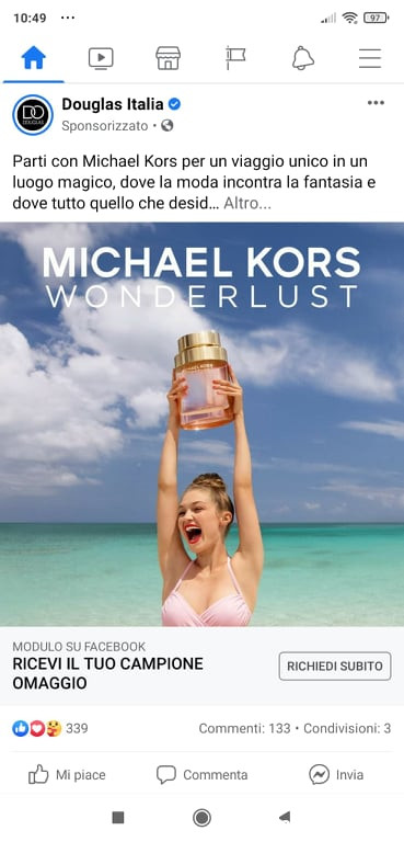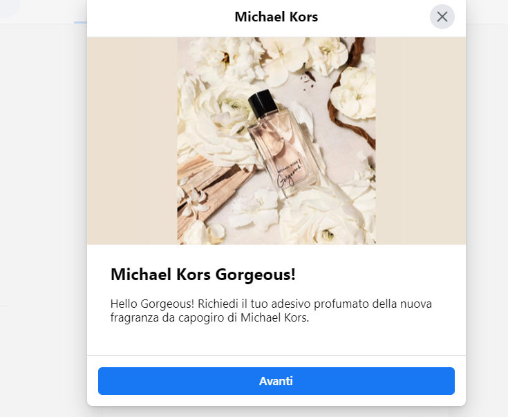 I fans della pagina facebook Michael Kors potrebbero aver visualizzato un post sponsorizzato che gli permette di richiedere gratis un adesivo profumato Gorgeous! la nuova fragranza firmata Michael Kors.