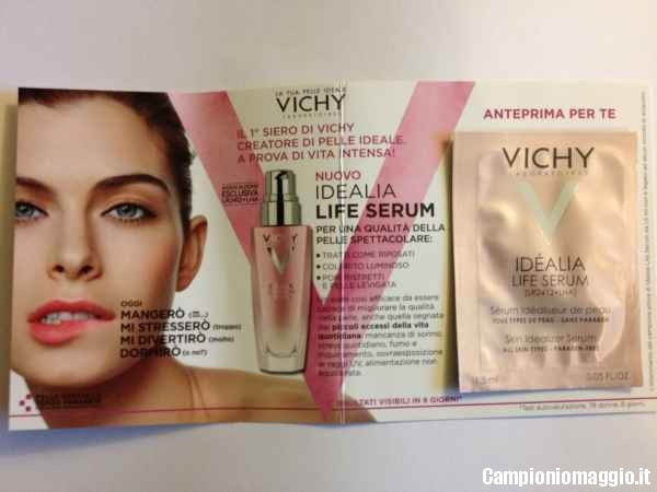 Tra questi vi era anche il campione omaggio Vichy che vedete in foto, si tratta di una minitaglia di Idealia Life Serum, il trattamento creatore di pelle ideale, per tutte le età, per tutti i tipi di pelle, anche sensibile e adatto a tutte le carnagioni.