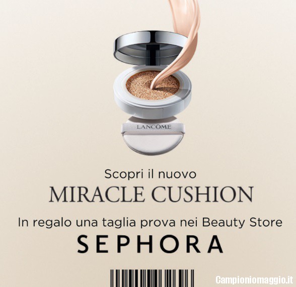 Grazi al coupon potrai ritirare nei Beauty Store Sephora una taglia prova del fondotinta Miracle Cushion di Lancome. Purtroppo non è stata comunicata una lista ufficiali dei punti vendita aderenti, quindi dovrete fare richiesta nel vostro negozio Sephora di fiducia.