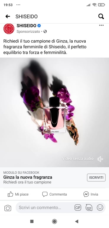 Navigando su Facebook ci siamo imbattute in un post sponsorizzato che ci invitata a richiedere un campione omaggio della fragranza femminile di Shiseido GINZA.