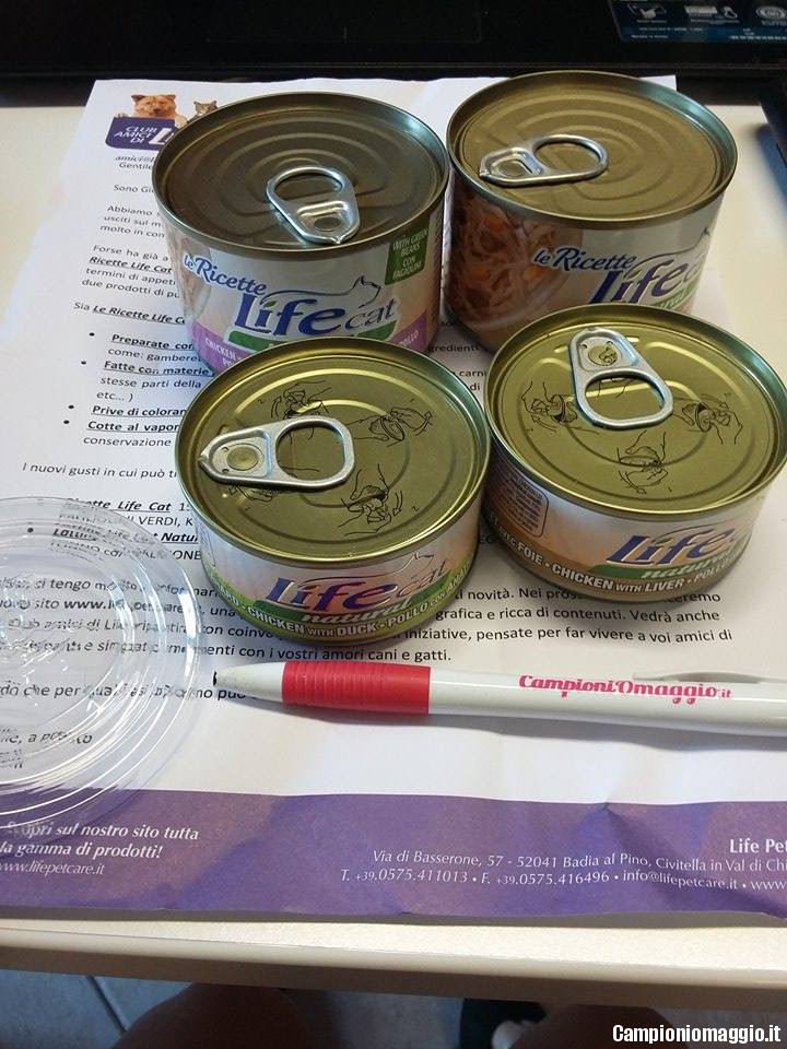 Abbiamo ricevuto in ufficio una bellissima sorpresa questa mattina! Senza averne fatto richiesta è stato recapitato un pacco contenente alcuni campioni omaggio degli alimenti per gatti Life, nello specifico dei nuovi gusti che l’azienda ha lanciato sul mercato: Ricette Life Cat 150g e Lattine Life Cat Natural 70g.