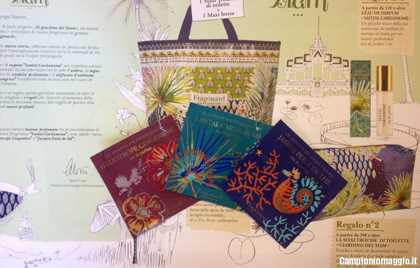 Segnaliamo raramente campioni omaggio stranieri, perchè non sempre vengono inviati in Italia, dato il costo elevato delle spese di spedizione. Per spirito di completezza abbiamo provato a richiedere gratuitamente il catalogo sul sito francese Fragonard e dopo alcuni mesi abbiamo ricevuto quello che vedete in foto: oltre al catalogo dei loro prodotti anche tre campioncini omaggio di profumi.