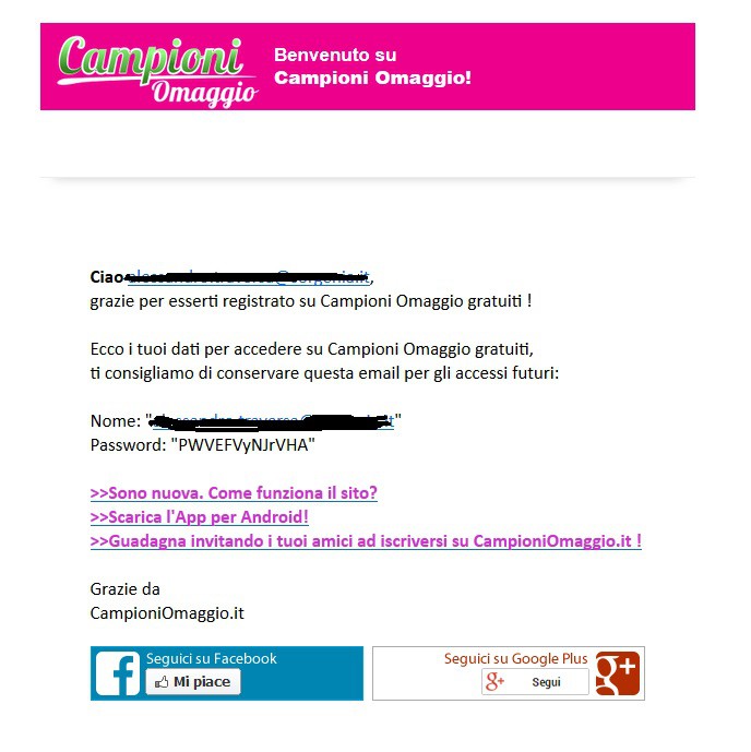 Si tratta di e-mail fasulle, che qualcuno ha ricreato perfettamente simili alle nostre e ha inviato a persone che non hanno nessun interesse per i campioni omaggio e i concorsi a premio, nè tanto meno hanno mai pensato di iscriversi a campioniomaggio.it (per quanto potrebbero comunque ripensarci 😉 ).