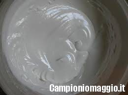 [dropcap]3[/dropcap] Dopo aver tenuto la panna in frigo per almeno 3 ore versate in una terrina e montatela a neve, in modo che si non stacchi dalle pareti della terrina stessa e unite lo zucchero precedentemente montato e messo a raffreddare, amalgamando in modo delicato dal basso verso l’alto.