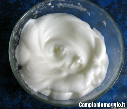 Passate quindi alla preparazione delle uova dividendo i tuorli dagli albumi in 2 terrine diverse e iniziate montando con il monta panna gli albumi. Saranno pronti quando lo stesso monta panna inizierà a “scrivere” e, provando a girare la terrina, non si staccherà dal fondo.
