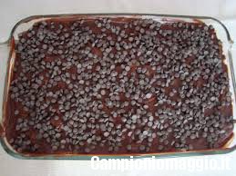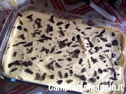 [dropcap]5[/dropcap] Distribuite quindi il primo strato di savoiardi e versate la crema in modo uniforme, rendendola liscia con una spatolina o con un cucchiaio. A questo punto distribuite le scaglie di cioccolato fondente che potrete acquistare già pronte, o creare dalla tavoletta di cioccolato con una comune grattugia.
