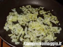 [dropcap]1[/dropcap] Versate in una padella un po’ di olio d’oliva e fatelo scaldare a fuoco basso. Prendete la cipolla, pelatela, affettatela finemente e fatela rosolare nell’olio fino a quando diventerà dorata.