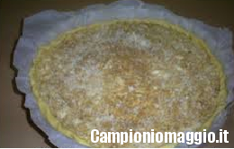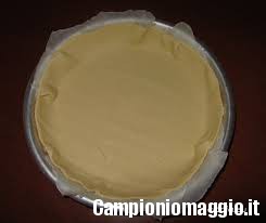 [dropcap]3[/dropcap] Terminata la preparazione della crema, bisogna stendere su una teglia da forno la sfoglia, questa deve essere srotolata direttamente nel ruoto sul cui fondo è stata adagiata della carta da forno. Quando la sfoglia sarà stesa per bene e fatta aderire anche ai bordi, bucherellare un po’ la pasta con una forchetta, così da evitare che si gonfi.