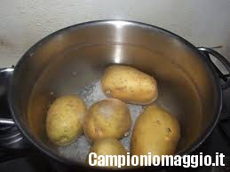 [dropcap]1[/dropcap] Lavate con cura le patate e mettetele in una pentola dai bordi alti, ricopritele di acqua e portate il tutto a ebollizione. I tempi di cottura varieranno a seconda delle dimensioni delle patate: lasciatele sul fuoco tra i venti e i venticinque minuti, facendo attenzione che si ammorbidiscano completamente. Quando saranno pronte, scolatele e lasciatele intiepidire.