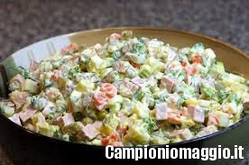 E’ tipico della Russia e non è un piatto dietetico purtroppo, in quanto è basato sulla maionese, ma in compenso è contrastata dalla presenza dei sottaceti che attenuano l’assorbimento dei grassi, ma sempre troppo poco. In ogni caso mangiatene in quantità molto moderate, per non perdere i sacrifici magari di una dieta che ha richiesto grossi sacrifici. E’ un piatto tipico del Natale ma può essere gustato anche come piatto estivo, antipasto o secondo.