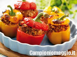 I peperoni ripieni rappresentano sicuramente uno dei piatti più frequenti che simboleggiano la stagione estiva a tavola. Grazie alla loro consistenza sono un gradevole piatto unico che può essere tranquillamente consumato dopo qualche giorno in frigo e mangiato anche a freddo sia a casa che a lavoro. E’ una ricetta molto golosa per gli amanti dei sapori forti , ma anche molto semplice per chi ama la praticità e vuole prepararli in anticipo per poi gustarli in un secondo momento riscaldandoli . La cottura dura all’incirca un’ora e permette di potersi dedicare ad altro mentre i peperoni sono in forno.