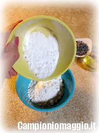 [dropcap]1[/dropcap] Mettete in una ciotola il caolino con il bicarbonato e amalgamateli insieme.