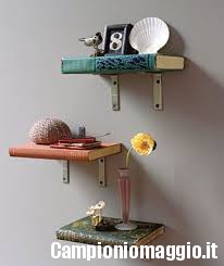 [dropcap]4[/dropcap] Un’altro oggetto utile ed originale, sono delle mensole da ricavare da vecchie assi di legno che magari giacciono in garage in attesa che qualcuno le butti via. Una bella spolverata, una smussata agli angoli ed una mano di vernice per renderle adatte all’ambiente dove vogliamo utilizzarle. Chissà quanto le avremmo pagate in un negozio specializzato.