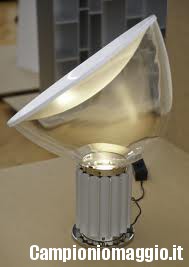 [dropcap]5[/dropcap] La vecchia macchina per la salsa del pomodoro, insieme a materiale elettrico riciclato, può diventare una lampada.