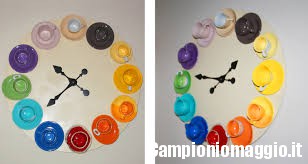 [dropcap]2[/dropcap] Decorazione per orologi. Se avete un grande orologio a muro che non amate particolarmente, potete dargli un tocco personale e renderlo più adatto all’ambiente in cui si trova, ad esempio la cucina, semplicemente prendendo dodici tazzine e dodici piattini, incollandoli tra loro per poi incollarli, a loro volta, su ogni ora dell’orologio.