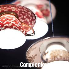 [dropcap]5[/dropcap]) E se invece volessimo utilizzare le nostre vecchie tazzine per illuminare un’abitazione? Basta prendere una tazzina con il suo relativo piattino, e privare tutti e due gli oggetti della parte centrale del fondo usando una piccola sega elettrica. Incollare la tazzina al piattino e appendere il tutto a testa in giù ad una mensola, dove abbiamo già attaccate delle lampadine. Gli effetti di luce saranno stupefacenti!