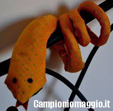 [dropcap]6[/dropcap] Un’idea originale per far felice vostro figlio, è partire da una cravatta non più utilizzata e imbottirla di cotone. Cucendone poi le estremità in modo darle il più possibile la forma di un serpente, potrete aggiungere occhi, bocca e l’immancabile lingua biforcuta.
