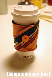 [dropcap]2[/dropcap] Con una vecchia cravatta è possibile realizzare un copritazza da avvolgere intorno alla stessa per evitare di scottarsi mentre siamo intenti a degustare una buona tisana purificante durante quelle lunghe e fredde notti invernali.