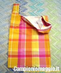[dropcap]2[/dropcap] Realizzare una borsa per la spesa: con una federa colorata si può creare una comoda shopper da usare al supermercato. Basterà piegare la federa verticalmente nel senso della lunghezza, da destra a sinistra, tagliare l’angolo in alto a destra, creando un arrotondamento. Si fanno gli orli e si uniscono i due lembi ottenuti, per formare i manici.