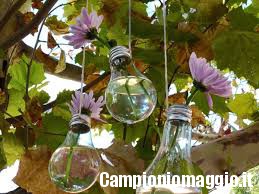 [dropcap]2[/dropcap] Per chi non ha grande manualità, in poche mosse è possibile realizzare delle fantasiose ampolle per fiori, destinate a decorare l’abitazione. Basta prendere la lampadina e rimuovere con cura la parte interna contenente il circuito, lasciando la zona argentata al di fuori intatta. Le sfere di vetro possono essere appoggiate ad una base in sughero o sospese con uno spago al pergolato. Riempiendola d’acqua si possono inserire all’interno fiori recisi o piccole piantine con terriccio.