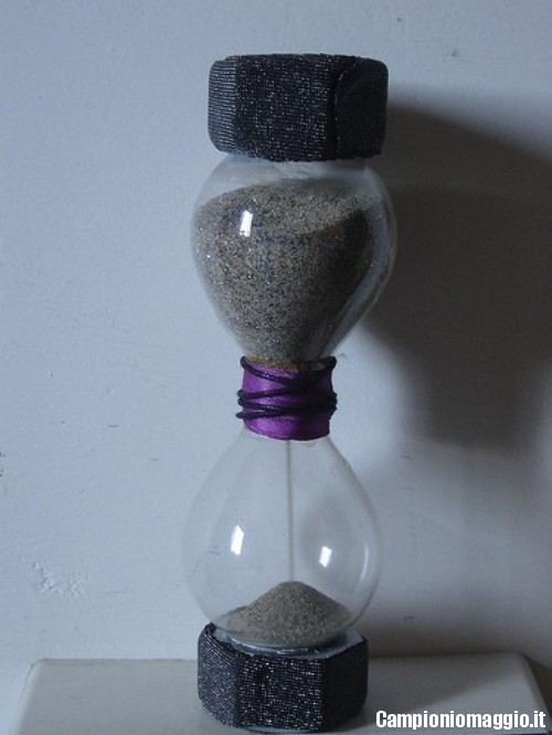 [dropcap]5[/dropcap] Due lampadine, un mucchietto di sabbia e del nastro adesivo: sono questi i pochi materiali necessari a ricavare una fantastica clessidra. Dal design moderno, facilissima da realizzare, otterrete un oggetto originale fatto da voi in pochi minuti. Dovrete unire le due estremità delle lampadine con il nastro adesivo, dopo averne riempita solo una per tre quarti con la sabbia. Potete anche realizzare una base per tenerla in verticale in polistirolo o sughero. Ed ecco terminata la vostra opera di riciclo creativo che sarà invidiata da tutti coloro che vi faranno visita.