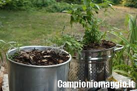 [dropcap]3[/dropcap] Vasi di fiori: dopo questa carrellata di utilizzi artistici, vediamo qualche esempio di riciclo più classico. Uno di questi è senz’altro il vaso di fiori da mettere in giardino: sarà sufficiente riempire la vecchia pentola di terriccio e piantare i fiori che desideriamo.