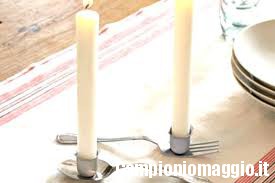 [dropcap]3[/dropcap]Portacandele. Sempre nell’ottica di una tavola elegante, le vecchie posate potrebbero essere impiegate come base di candele inserite a loro volta in un ditale di metallo che le faccia stare in piedi, e quest’ultimo sarà posato sopra la testa del cucchiaio o della forchetta.