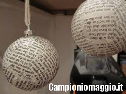 [dropcap]4[/dropcap] Col riciclaggio dei giornali vecchi si possono creare delle simpatiche decorazioni natalizie, talmente semplici che possono farle i bimbi. E’ la tecnica della cartapesta. Si rivestono dei palloncini gonfiati con fogli precedentemente bagnati in acqua e colla vinilica. Occorrono tre o quattro strati per dare la giusta consistenza. Dopo che le sfere si sono perfettamente asciugate, si estrae il palloncino forandolo con un ago in prossimità del nodo. Colori ad acqua, colla vinilica, nastri e palline d’oro e d’argento serviranno per completare il lavoro, coinvolgendo tutta la famiglia.