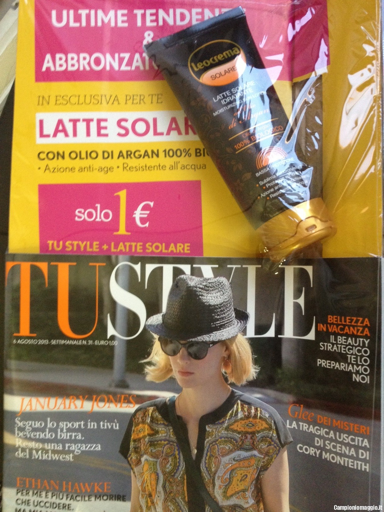 Ragazze vi ricordate la promo della scorsa settimana, grazie alla quale molte di voi con solo 1 euro hanno ottenuto due riviste e un solare omaggio (qui i dettagli). Bene, questa settimana Tu Style è in edicola con il formato da 75 ml di crema solare Leocrema, all’olio di argan.