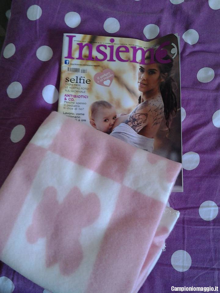 Sulla rivista mensile per le mamme Insieme di ottobre potete trovare un utile omaggio che riscalderà le prime giornate fredde d’autunno del vostro bambino. Al costo di 2,60€ avrete sia la rivista che una calda copertina di pile, disponibile in rosa e azzurro. Quella che vedete nella foto è stata ritirata da Bunny. E’ possibile che non tutte le edicole siano fornite di entrambe le varianti del pile, chiedete di enervi una copia da parte al vostro edicolante di fiducia.