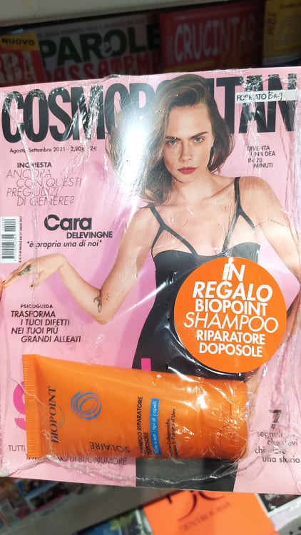 Con il numero di agosto-settembre 2021 della rivista Cosmopolitan potete trovare in omaggio lo shampoo doposole riparatore di Biopoint.