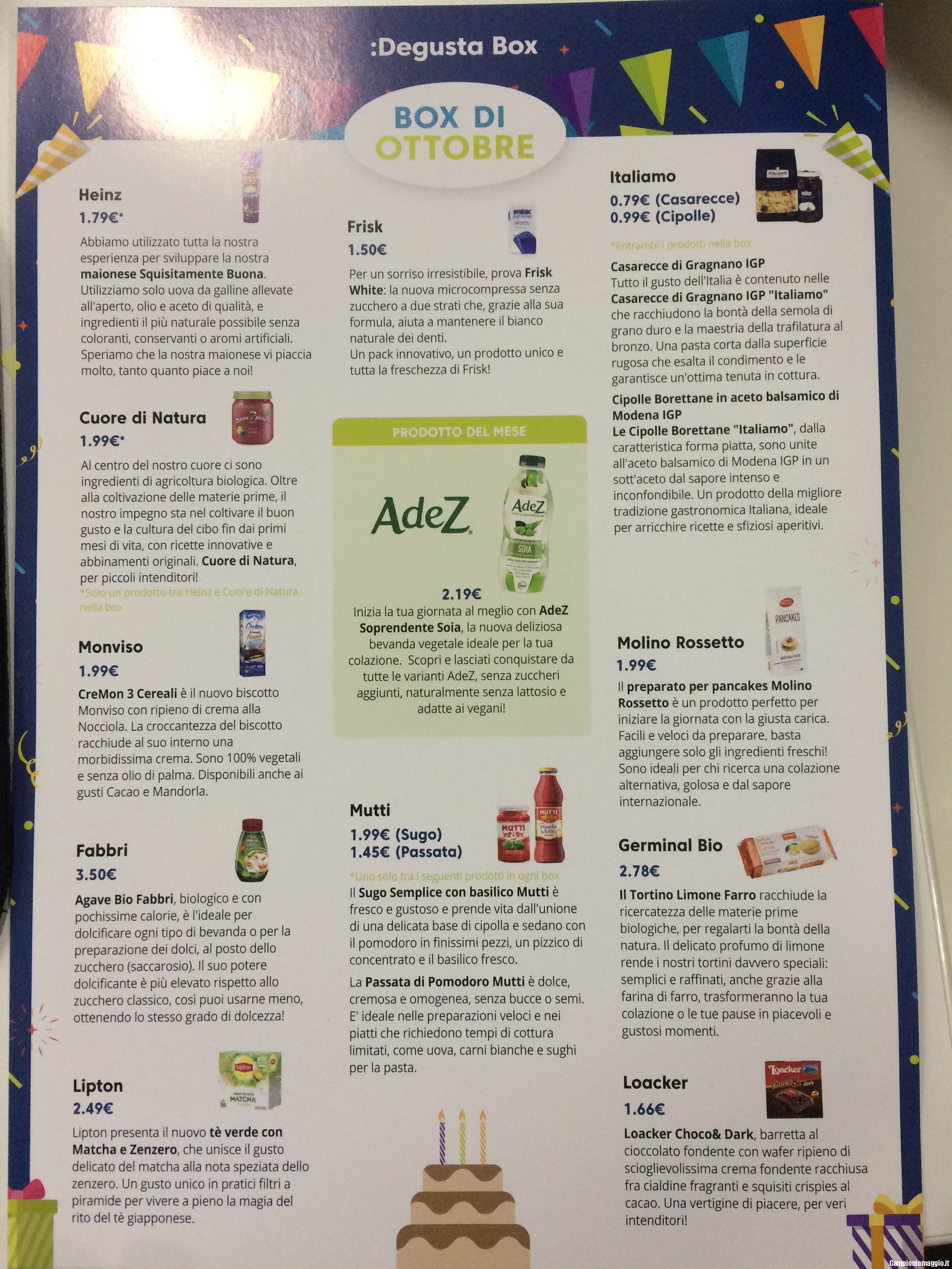 La box contiene 15 prodotti, che se non fossero inclusi, costerebbero in totale molto più che 9,99€. Inoltre puoi dare il tuo giudizio ad ogni brand! E condividendo Degustabox con i tuoi amici puoi ricevere box gratis.
