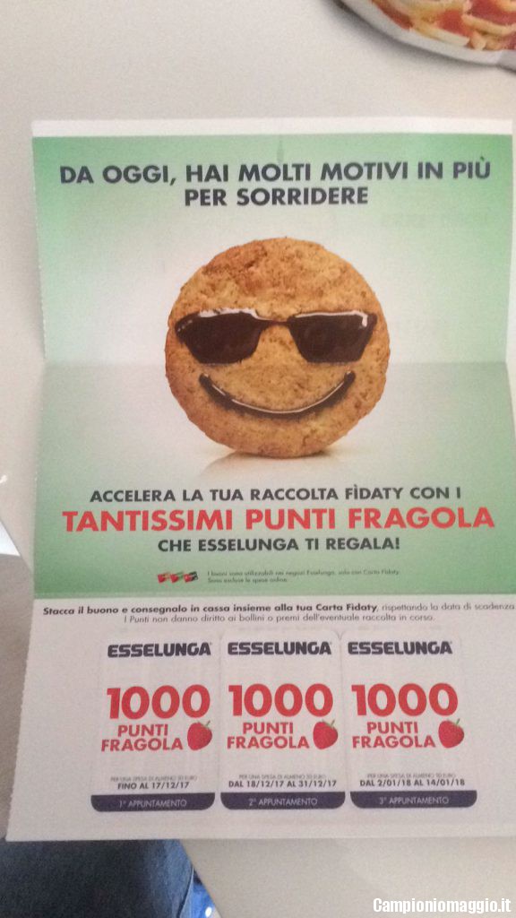 1000 punti omaggio per la raccolta Esselunga con carta Fidaty sono davvero tanti e se utilizzeremo tutti e tre i coupon i punti sulla carta saranno 3000!