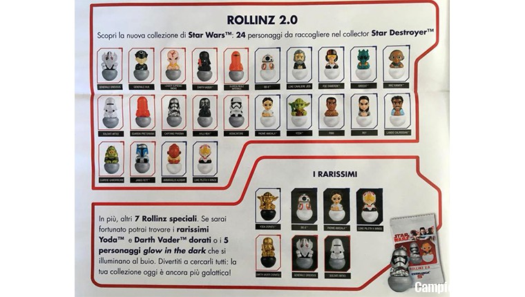 Per ottenere un Rollinz di Star Wars è necessario fare una spesa di 25€ oppure impegnare 50 punti fragola della Carta Fidaty. Anche in questo caso sarà acquistabile un raccoglitore a forma di Incrociatore Stellare, al costo di 2,49€, il “Collector Star Destroyer”.