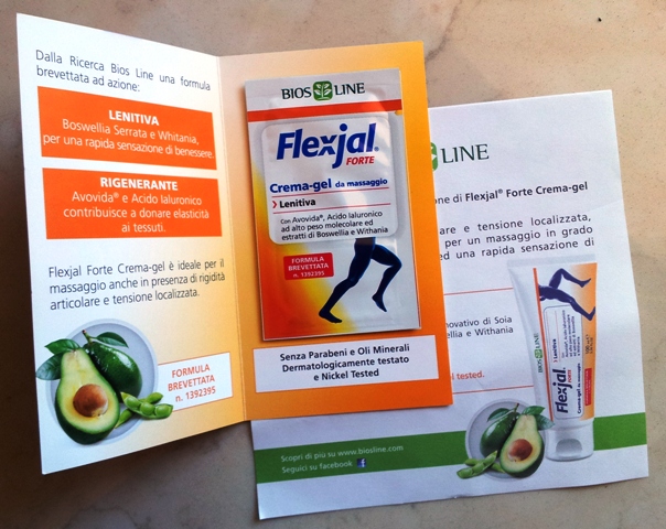 Puntualmente, come sempre, ecco un altro campione omaggio: la crema da massaggio Flexjal della BiosLine