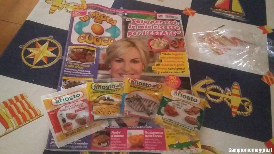 Vi piace cucinare a amate sperimentare sempre cose nuove in cucina? Sicuramente conoscerete la rivista della famosa trasmissione televisiva, condotta da Antonella Clerici, “La Prova del Cuoco”. Questo mese la trovate in edicola con quattro bustine di Insaporitori Ariosto omaggio, un mix di erbe pensate per arricchire di gusto pollo, carni arrosto e ai ferri, pesci, patate, spezzatini, sughi e primi piatti. Il costo della rivista + omaggi Ariosto è di 1,90 euro.