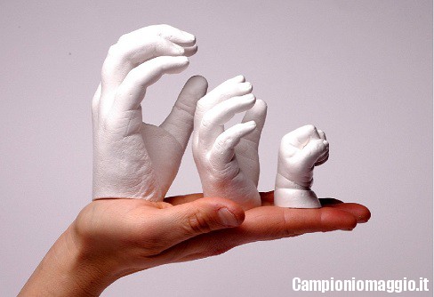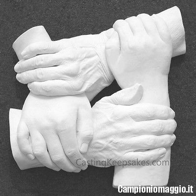 Su e-bay invece trovate il kit per realizzare le mani intrecciate di tutta la famiglia, da trasformare poi in un simpatico portafoto oppure in un oggetto d’arredamento. Potrete anche colorarlo o scrivere