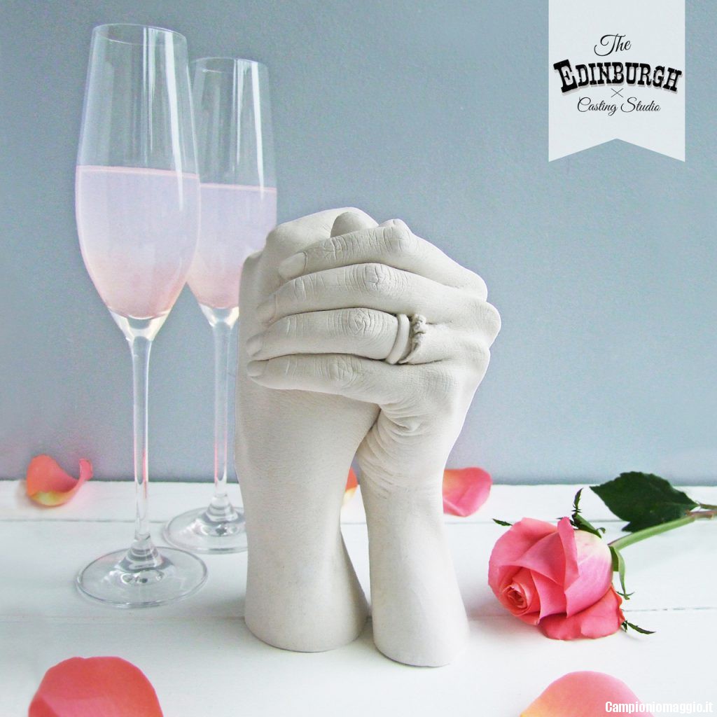 Se invece vi piacerebbe realizzare un soprammobile che rappresenti il vostro amore, potete fare il calco delle vostre mani intrecciate con il kit The Edinburgh Casting Studio. Potete utilizzarlo anche per il calco della zampa del vostro cane (a patto che riusciate a tenerlo fermo). Si tratta di un prodotto atossico e sicuro.
