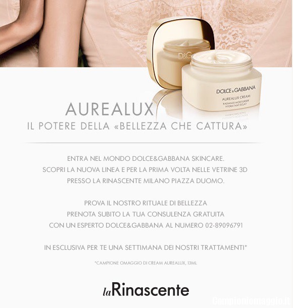 La Rinascente Milano: campioni omaggio Aurealux Dolce&Gabbana